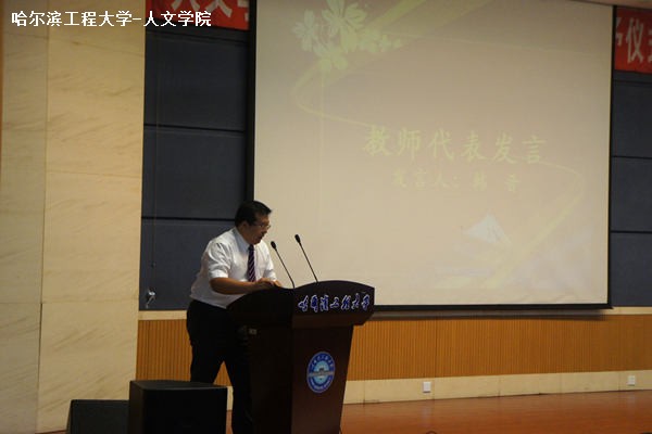 教师代表韩晋发言。他代表全体教师祝福毕业生,希望毕业生们脚踏实地,继续求索,并学以致用,不断向前,不断奋进,从此扬帆远航,追求梦想。然后,毕业生代表向学院献礼,感谢学院的培训和关爱,并深深祝福学院。