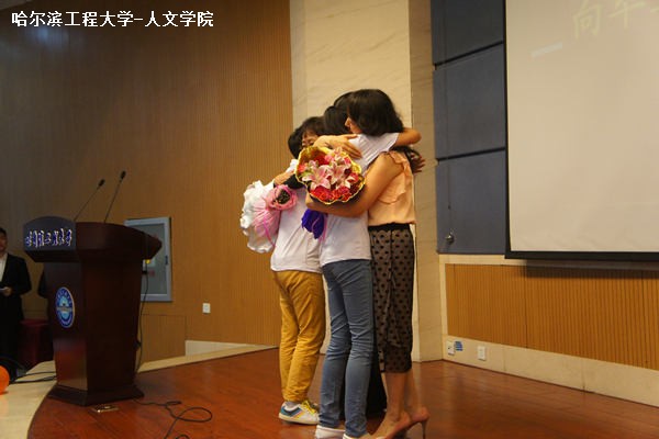 在“感恩秦子情”部分,伴着张昊昱同学的歌声,毕业生代表向毕业生家长代表献礼并深情拥抱,感谢父母多年的呵护,养育和支持。