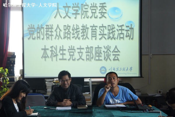 9月7日中午12点25分,人文学院党委在41号楼资料室召开“党的群众路线教育实践活动”本科生党支部座谈会。人文学院党委副书记杨国庆、团委书记、学工办主任董春辉及全体本科生党员、预备党员出席会议。本次座谈会旨在帮助学生党员了解《ok138太阳集团机关党委深入开展党的群众路线教育实践活动实施方案》,督促其深入学习该文件,了解其精神,积极参与具体实践活动。同时,以此为平台加强本科生党支部学生与学院领导的互动。