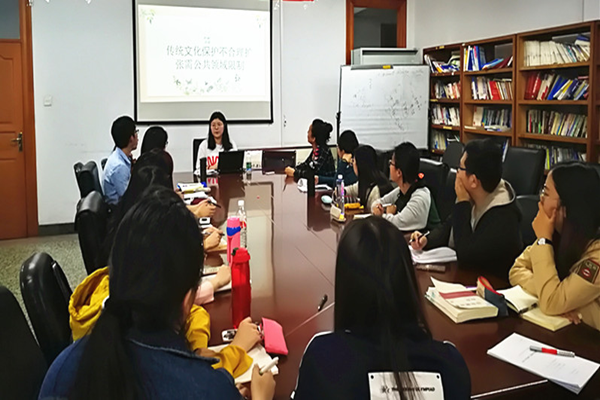随后,与会同学纷纷发表看法。其中,郭娜娜建议是否适当增加传统文化主体界定分析以承接保护路径,多方位多角度保护传统文化;赵靓婷认为寻找“界限”需要厘清权利归属;李颖超提出不仅可以从制度层面提出问题的解决路径,也可以加入平台建设方面内容;凌梦建议理清传统文化保护的可行性和必要性。对此,王迪老师就传统文化保护的特殊性发表观点,指出可以为传统文化提供特殊的知识产权保护。张冬老师就探讨进行了归纳总结并指出了应不仅仅从传承角度研究,宜加入传统文化发展的内容,结合数字化、互联网的背景找到根据和突破。