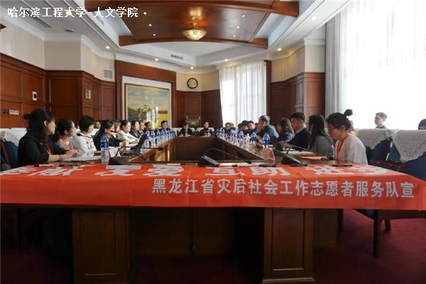 哈尔滨市“8.25”重大火灾发生后,在黑龙江省民政厅的指导与帮助下,黑龙江省社会工作学会,联合黑龙江省社会工作高校联盟、哈尔滨市社会工作协会,共同面向我省高校、社工服务机构、心理服务机构及广大专业社工,招募社会工作志愿者,得到积极响应,社会工作专业服务在灾后救援过程中发挥的重要作用得到了政府及社会各界的认可。灾后社工志愿服务队的成立对我省灾后社会工作的发展,以及对黑龙江省社会工作的整体发展起到了推动的作用。此次服务队成立活动得到省民政厅和各界人士的关注,黑龙江省民政厅社工处袁绍志处长出席了此次活动,省社工学会黄红副会长、浙江师范大学王志寰教授、哈尔滨市民政局孙辉、省民政厅社工处张聪、中国社会工作杂志社李海雁、哈尔滨市友爱社工服务中心理事长李雪等嘉宾应邀出席。成立仪式在庄重而严肃的氛围中顺利进行。