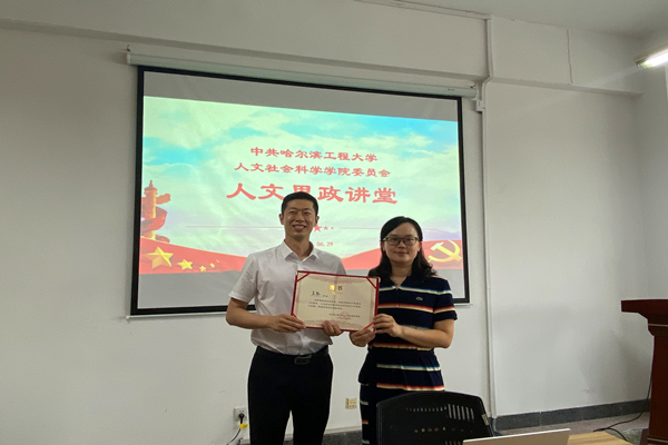讲座开始前,侯博文代表人文学院为吴际老师颁发人文思政讲堂任课教师聘书。本次讲座主要从精准扶贫的社会学叙事与成功、精准扶贫媒体中的宏大叙事、精准扶贫中的生命个体以及如何理解并推进乡村振兴四个方面来展现从精准扶贫到乡村振兴的伟大历程。讲座开始,吴际从脱贫攻坚的部署与动员入手,列举了一些相关的文件;随后,吴际选取了在脱贫攻坚中具有代表性意义的例子为学生们进行讲解,这些事例贴近生活,引起学生们的共鸣;最后,吴际提出了推进乡村振兴的具体措施并进行总结。