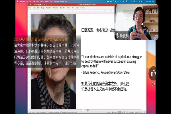 在讲座伊始,靳夏楠开始介绍随着中国区域研究学科的兴起与发展,越来越多的学者有机会和能力去国家和当地官员和人民进行直接的交流,引出了本次讲坛的相关主题,之后,靳夏楠通过在卢旺达一年的研究经历和当地深入的田野研究,分析出了在当地女性家务劳动与阶级关系的问题,阶级与性别的交叉,然后,靳夏楠向大家表示,田野计划也收到了家政工Odette的影响,并在此的基础上,阐述了绘画方式的三种意义,分别是认识论、方法论和政治意义,随后,靳夏楠讲解了她在卢旺达进行了非洲性别研究,指出了非洲性别研究承受的两座历史大山:人类学和发展模式跨学科实践,最后,靳夏楠回答了在田野工作中所遇到的困惑与难题,以及知识生产的政治和地理位置的相关问题。