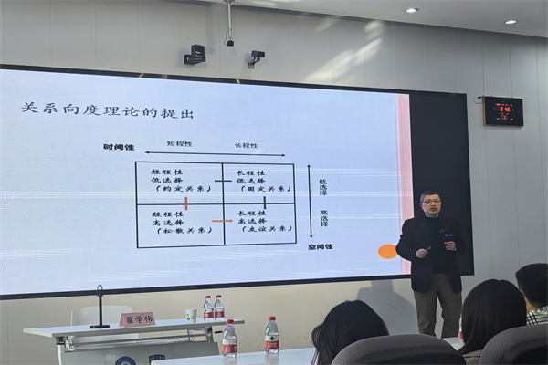 讲座伊始,郑莉院长对翟教授的到来致欢迎词,并向各位师生简要介绍了他的成就和研究领域。随后,翟学伟老师从日常生活中的现象和问题出发,提出将“爱情”与“姻缘”视为两种不同的理想类型。在他看来,前者具有个体内在性,比如重视吸引力、理想化、激情等特点,后者则重视关系外在性,强调如命定、般配、说媒等特点。立足于这两种模式之起点与延展,诸多亲密生活现象可以得到合理的解释,进而实现对此议题的知识建构。