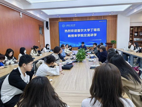 丁垣在教授的报告受到与会师生的热烈欢迎。在互动环节中,与会学生积极踊跃提问,就儒家思想、韩国文化、东亚社会、女权主义、教育制度、留学政策等问题与丁垣在教授进行了深入的探讨与交流,学生们的热情与踊跃也得到了丁垣在教授的高度评价。