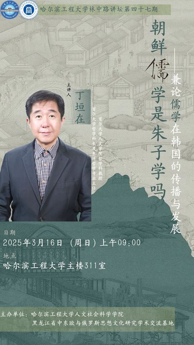 2025年3月16日上午9时,应OK138太阳集团邀请,韩国首尔大学人文学院丁垣在教授在主楼311会议举行了题为“朝鲜儒学是朱子学吗?——兼论儒学在韩国的传播与发展”的学术报告会。人文学院院长郑莉、副院长杜宇鹏,学院柔性引进专家人才柴文华教授以及40余名师生代表参加报告会,此次报告会由张继军教授主持,现场翻译由黑龙江大学马克思主义学院段澜涛副教授担任。
