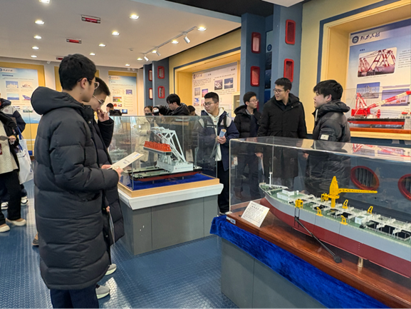 在哈军工纪念馆,同学们驻足于泛黄的笔记本展柜前,仔细端详着“哈军工”时期学子们工整的学习笔记,透过这些珍贵文物感受着学校治学传统与厚重的历史底蕴。在船舶博物馆,讲解员为每位同学发放研学手册,同学们边参观边记录,遇到问题主动请教,通过参观了解了船舶发展历史、船舶结构等知识,学习氛围浓厚。